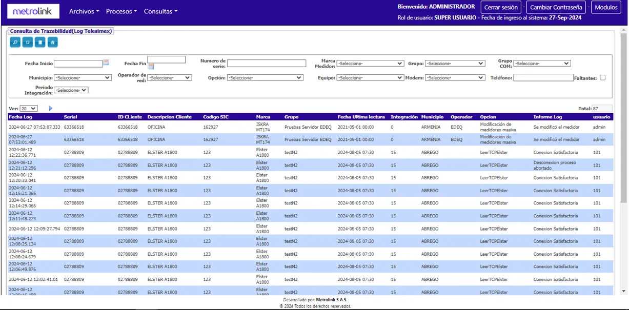 Suministra al cliente la lectura de los medidores, estadísticas y reportes de errores, garantizando la veracidad de la información según sus necesidades. Además registra la configuración personalizada de cada medidor.